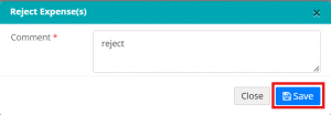 4.Enter a comment for the rejection if you are rejecting the expense, then click ‘Save’.