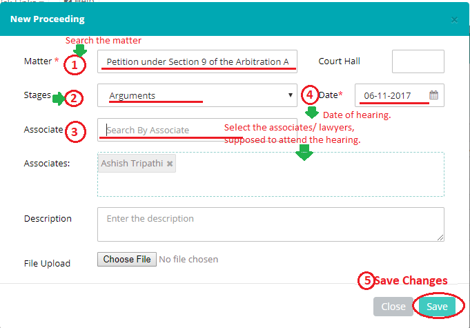 - Matter (Mandatory): Matter, for which hearing is expected.