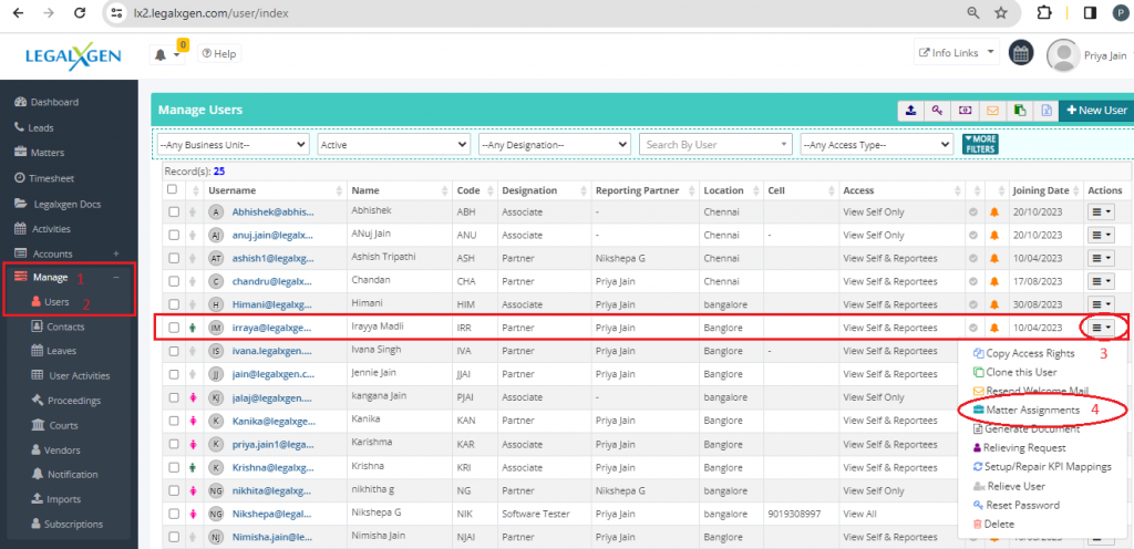 4. Go to the last column ‘Action‘, and you’ll see ‘Matter Assignment‘.