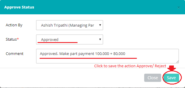 - You’ll be presented a window which enables you to Approve/ Reject any vendor invoice.
