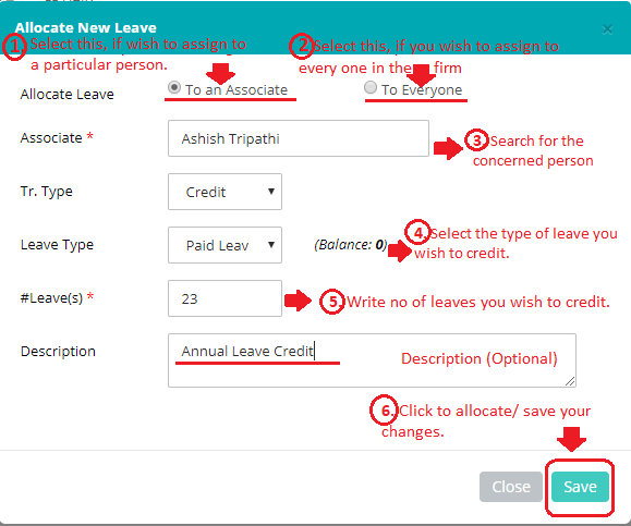How to allocate/credit leave to an associate (or every one)?