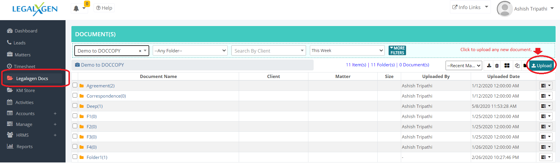 - Go to ‘…Docs‘ menu option on your left. Usually it’s your ‘<Firm Name> Docs’. e.g. If the firm name is ‘Legalxgen’ you’ll see ‘LegalXGen Docs‘