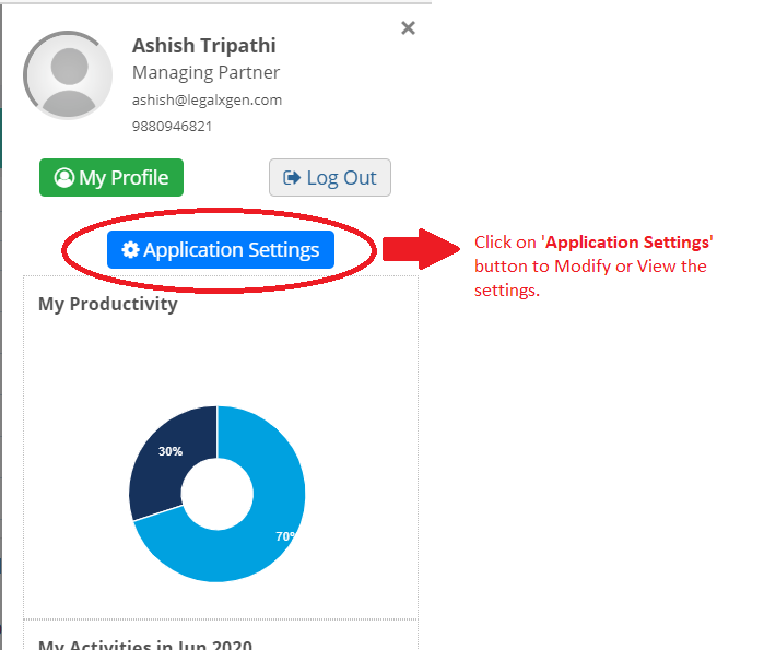 - Click on your name at the top right. Click on Application Settings button.