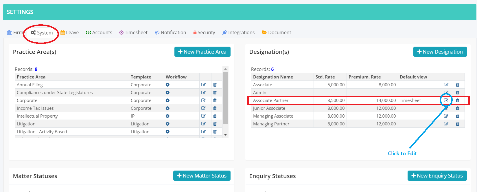 - Click on the edit button for the designation you wish to edit.