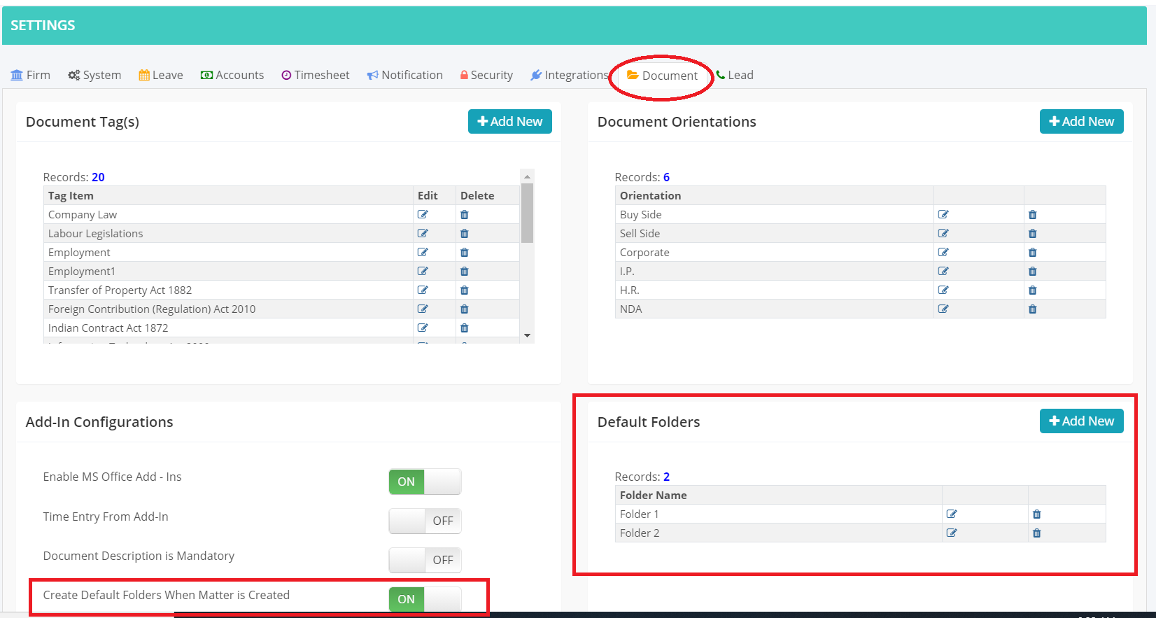 - You need to on the switch ‘Create Default Folders When Matter is Created’ present under ‘Add-In Configurations’ panel