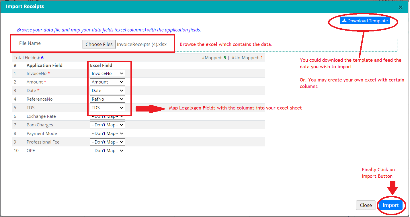 - You’ll see a new window to facilitate the Import. You may download the pre-defined template or simply upload your own excel.
