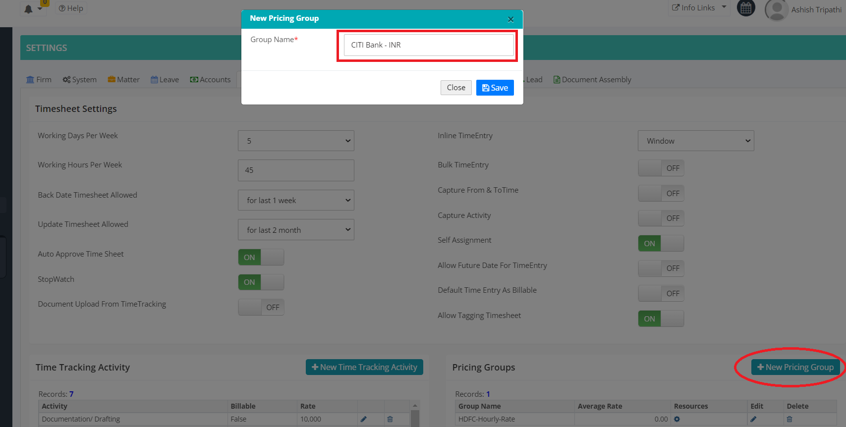 - Search for the resource, Enter the hourly rate and hit on Save button.