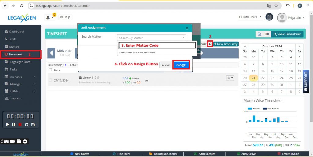 - Enter Matter Code you wanted to get assign